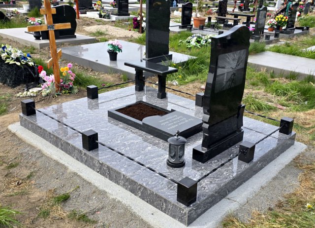Если надгробие заказывается под ключ, т. е. с установкой, то к перечисленным элементам добавляется монолитный бетонный фундамент.
